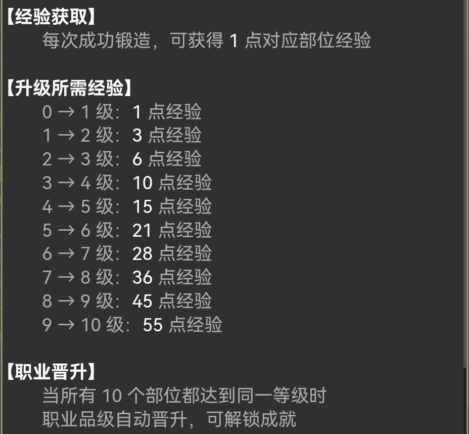 通过锻造装备提升部位等级,可以打造更强力的装备