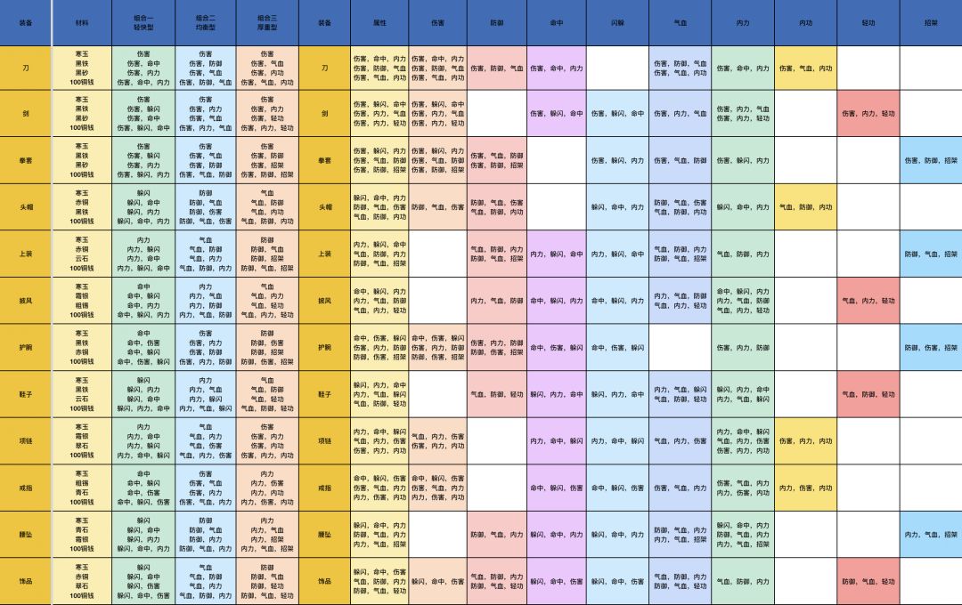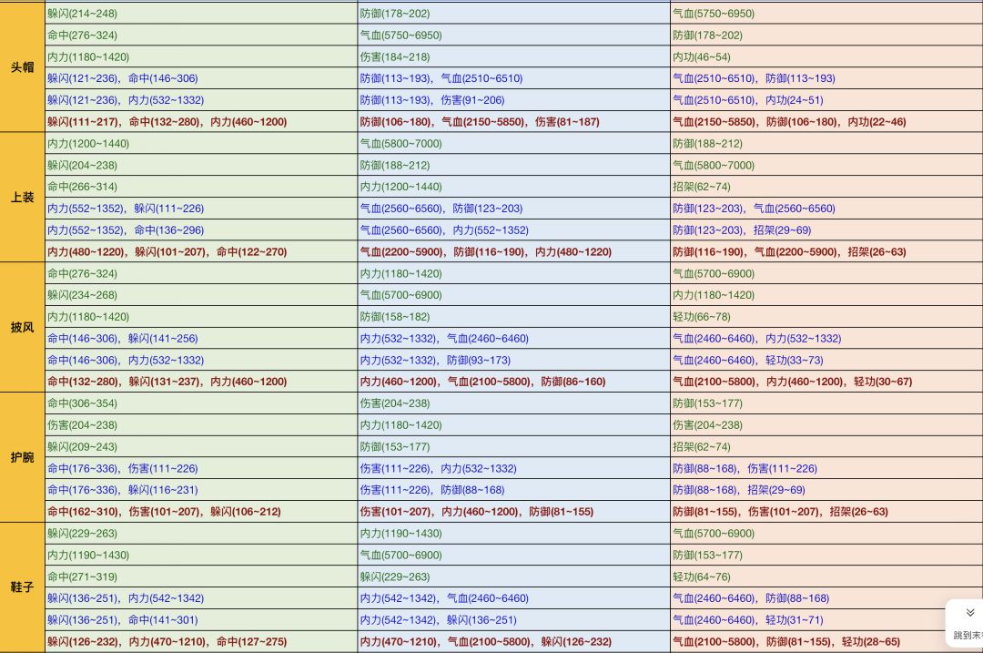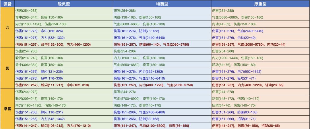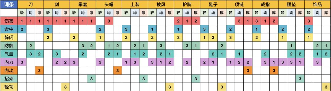 【说明】数字1/2/3表示该词条在该类型中的位置(第1/2/3词条)。轻=轻灵型,均=均衡型,厚=厚重型