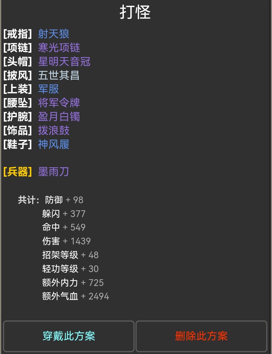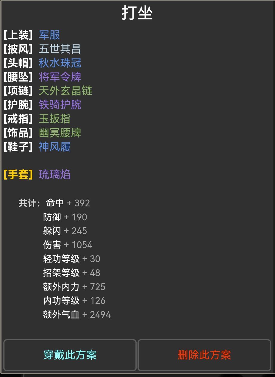比如命中装,躲闪装,均衡装,纯血装等等。。