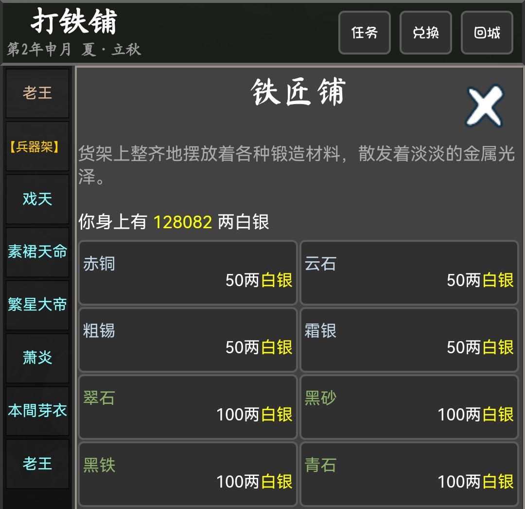 锻造时选择回退,可返还100铜钱,10%返还材料(包括寒玉),可同时返还多个材料(比如全部)。