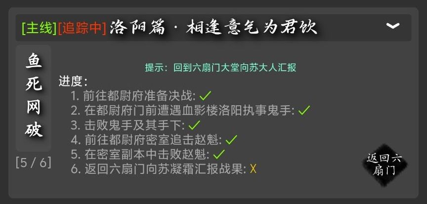 首先前往洛阳六扇门夏捕头处右下角密令