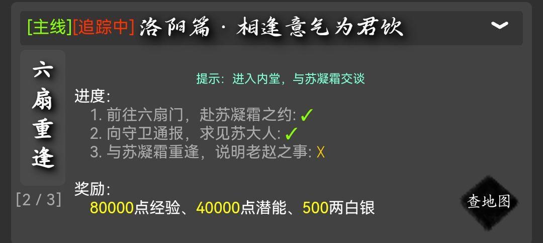 去六扇门大堂找苏凝霜,听取她告知真相