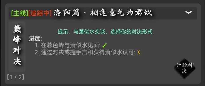与萧似水交谈,选择你的对决形式