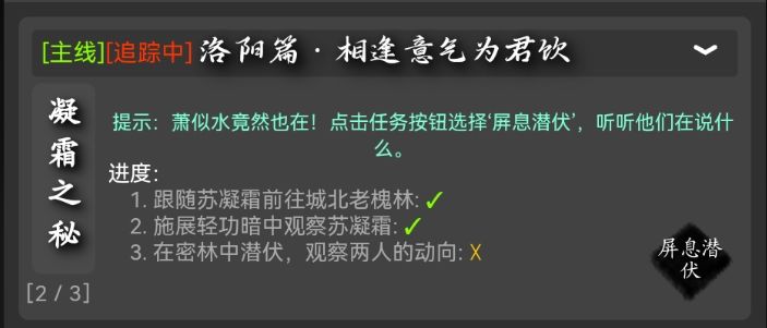 萧似水竟然也在!点击任务按钮选择'屏息潜伏',听听他们在说什么。