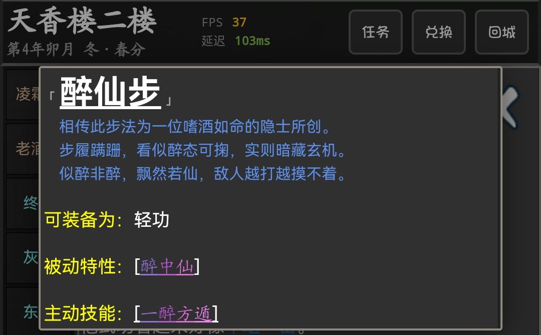 习得蓝色轻功·醉仙步