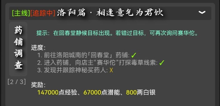在回春堂静候目标出现(原地等几秒)