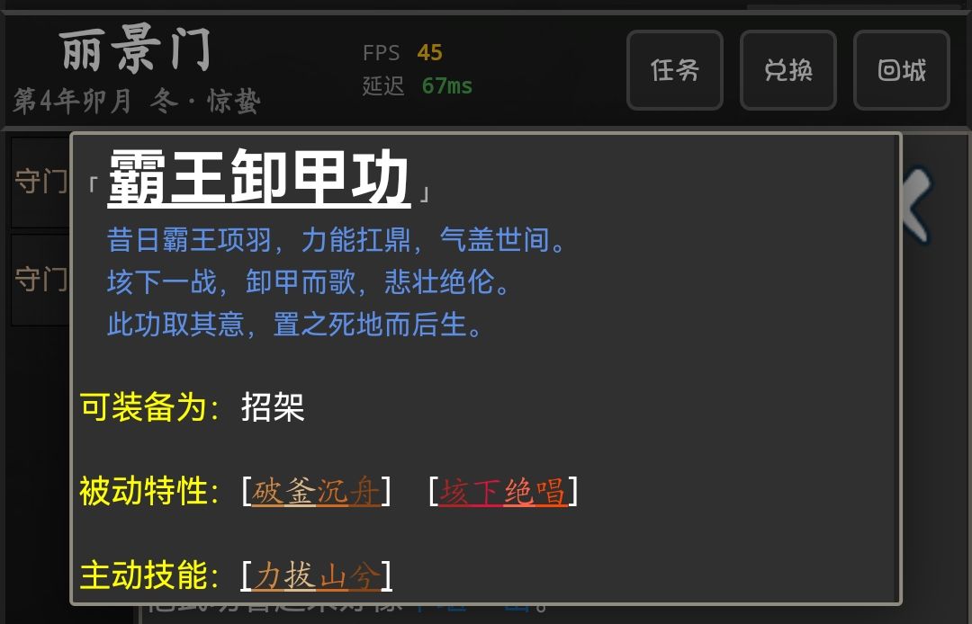 习得蓝色招架·霸王卸甲功