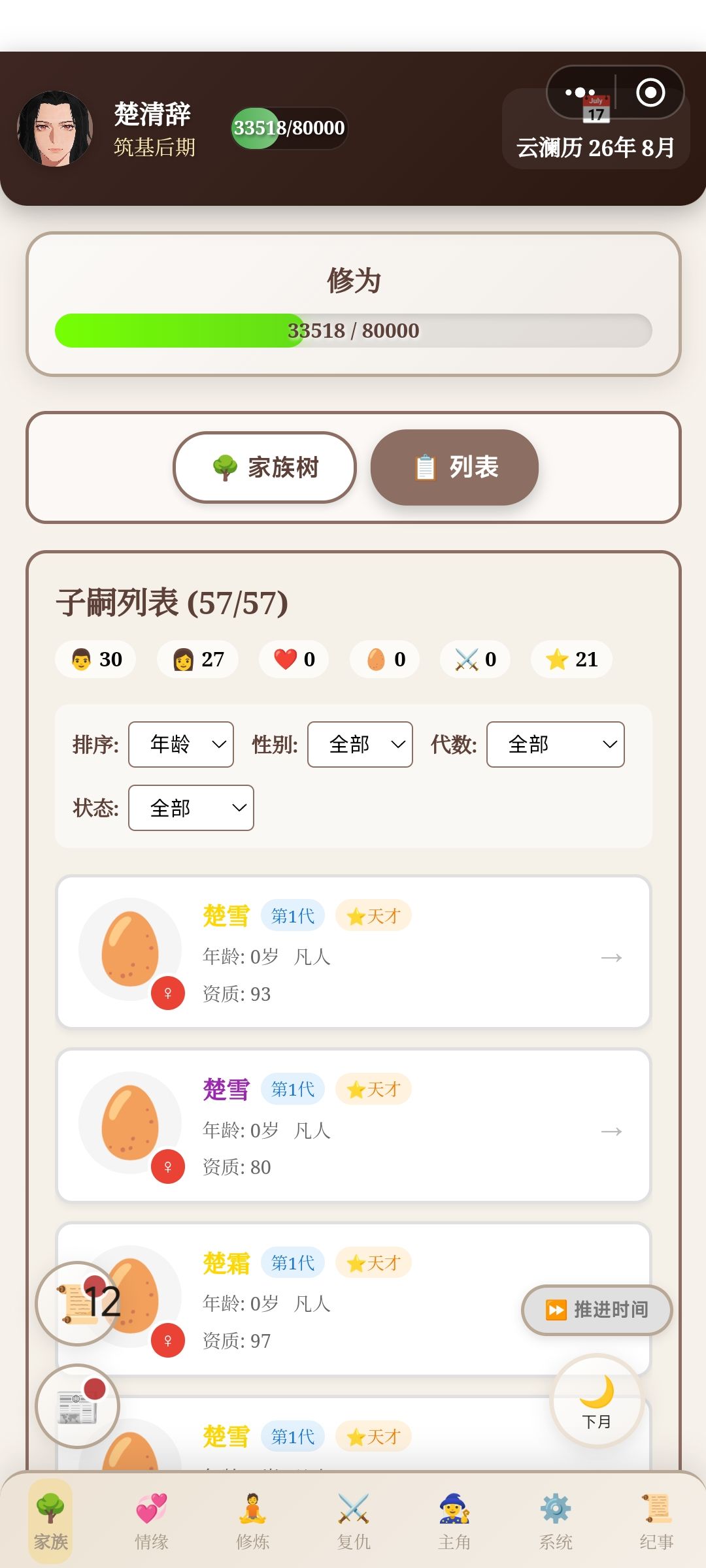 ❼你的资质也决定孩子的资质【P8是升到天灵根后出生的孩子。情缘一直没变动,但是我的资质到天灵根后出生基本都是天才】