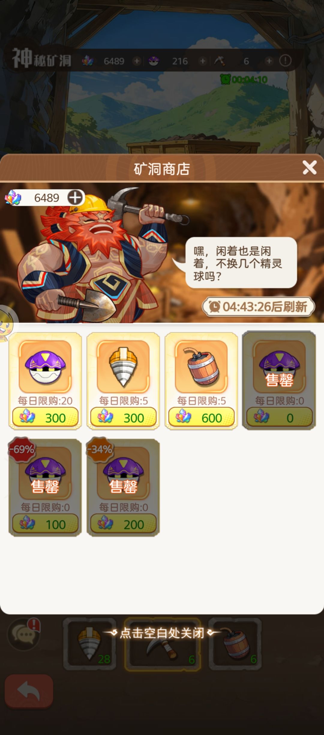 挖矿最重要的资源就是精灵球,最好是手动挖蓝色箱子,挖矿的碎片性价比太低了,橙色、紫色品质的矿也只给一个精灵球,而且是两三次才能挖一个,所以这些高品质的矿最好是直接用钻头钻,或者炸药直接炸一堆比较好。蓝色的矿出钻头炸药的概率很高,所以也不会缺钻头跟炸药的。