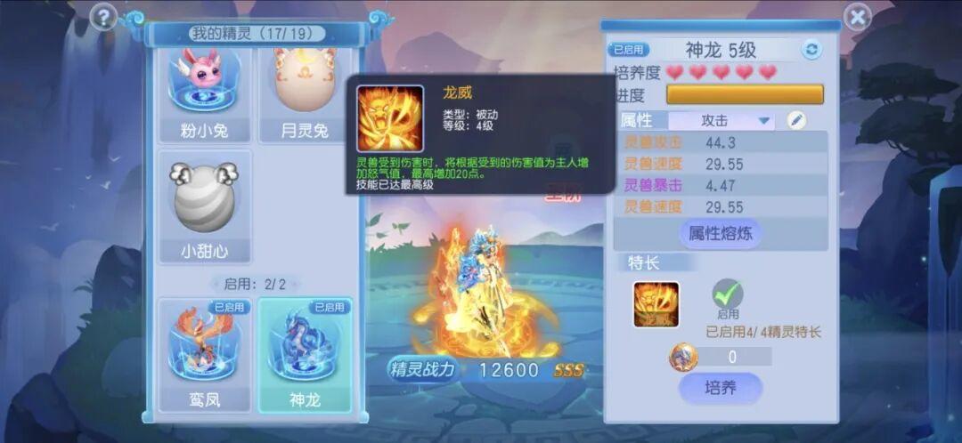 一个优秀的辅助职业,必不可少的精灵——神龙,通过累充获得,并非说神龙是必选项,至少神龙是能够左右整场战斗特技释放的关键点。