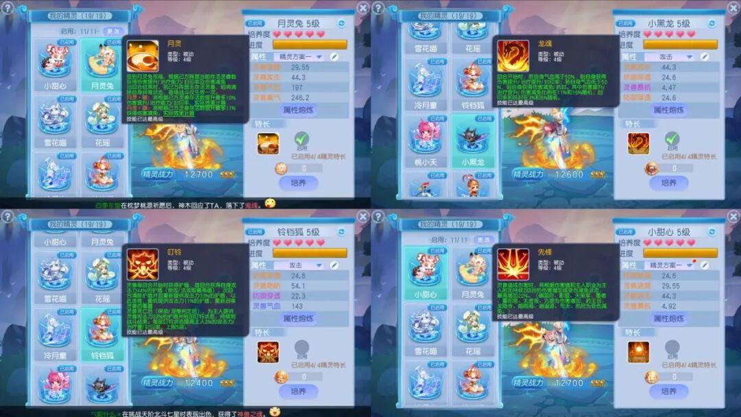 4 格宠物,神龙锁 1 格,桃小夭+鹤小仙再锁 2 格,最终一个技能就决定了这两个不同类型的辅助应当如何选择精灵!
