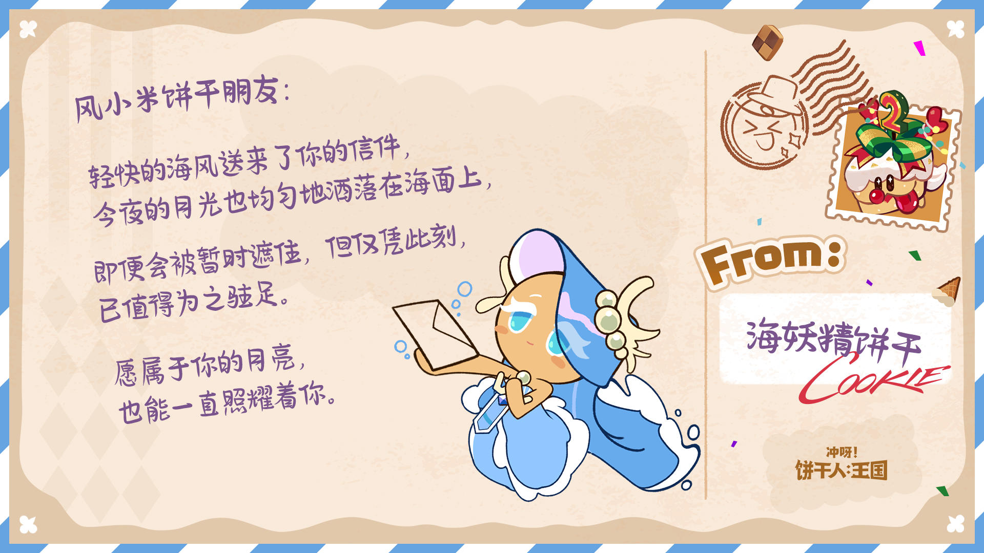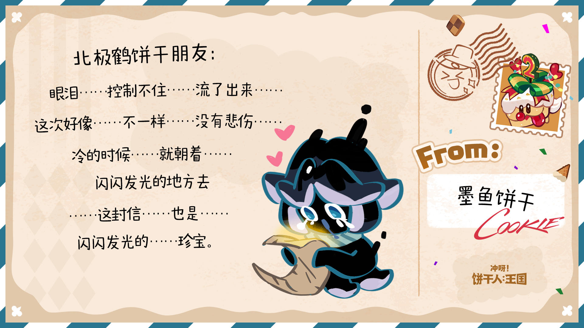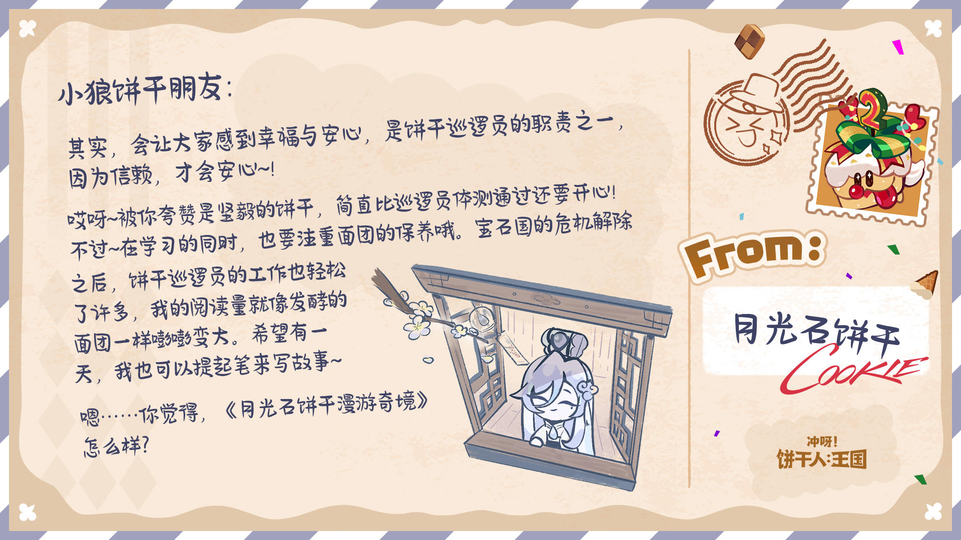 除了参与游戏内热气球有机会收获回信外,今年的饼干们也有随机抽取来信的饼干朋友,并给大家回信哦~