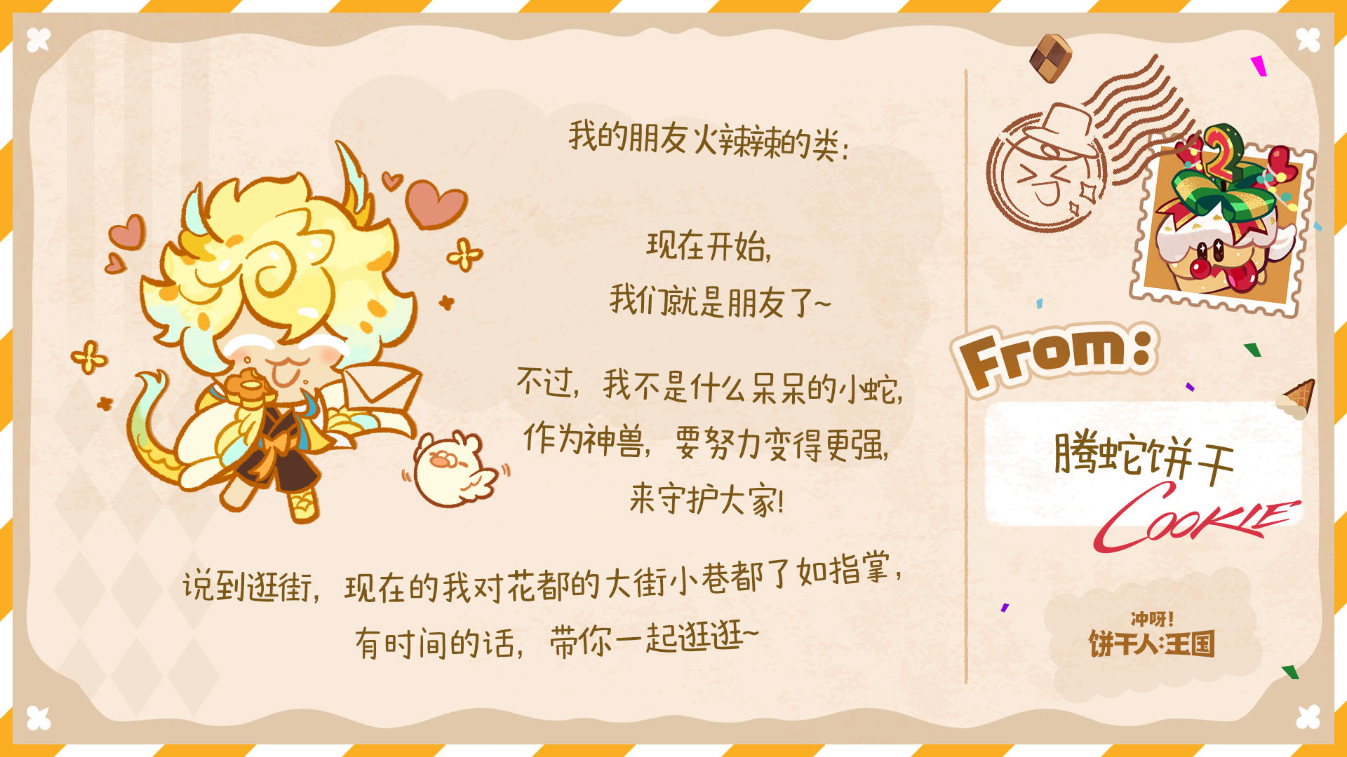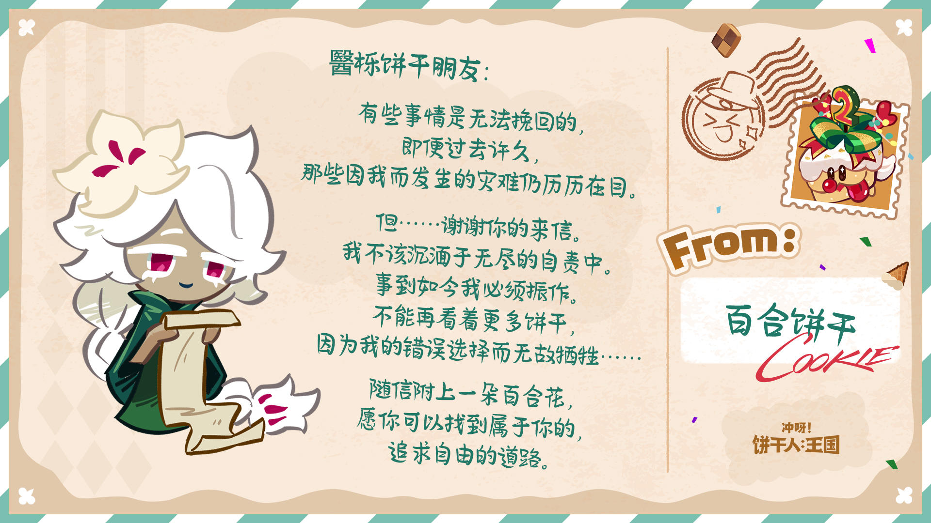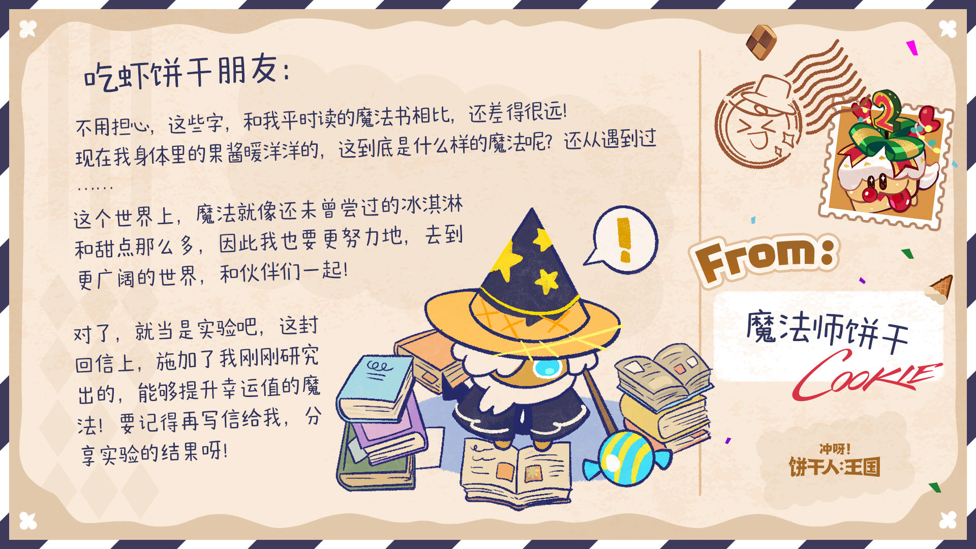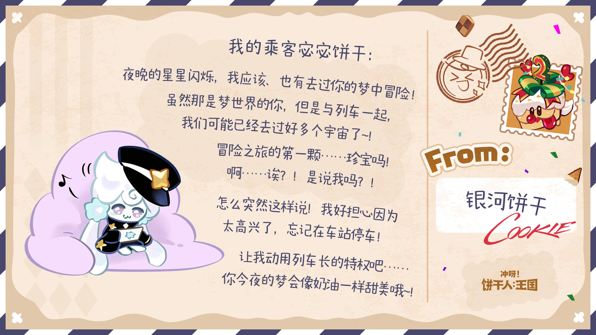 除了参与游戏内热气球有机会收获回信外,今年的饼干们也有随机抽取来信的饼干朋友,并给大家回信哦~