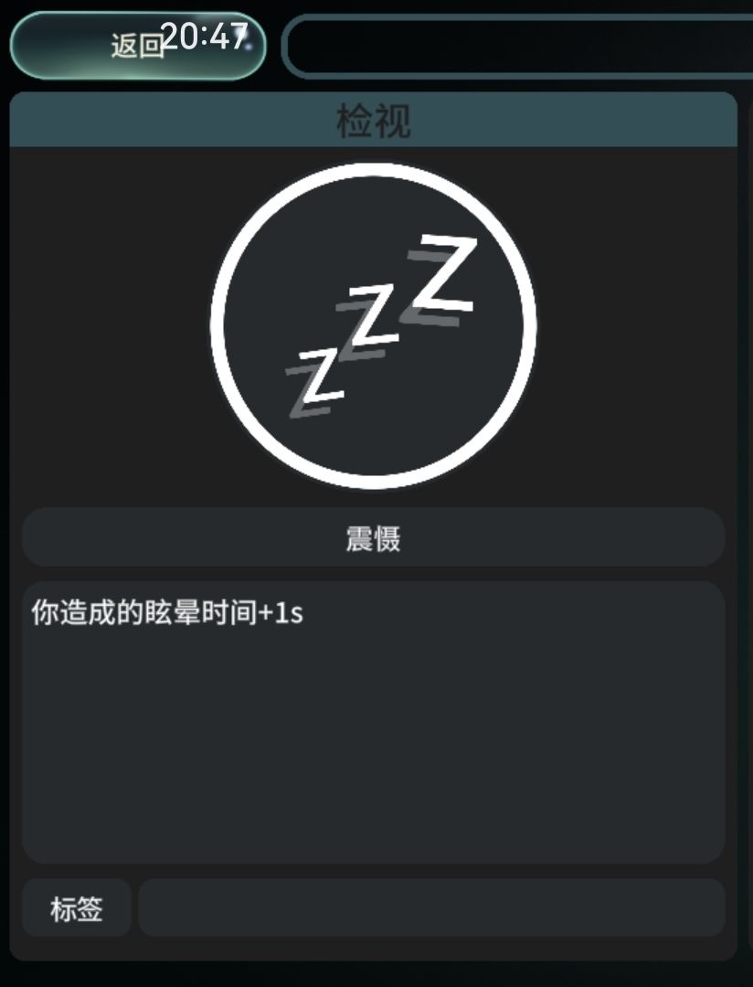 “眼”的冷却1秒,“震慑”每升1级多晕1秒,只要到2级,就可以无限眩晕。注意,升级“眼”只加范围和眩晕时长,前期略鸡肋,不推荐升级,最好多放几个部位,或者选其他优秀的天赋。