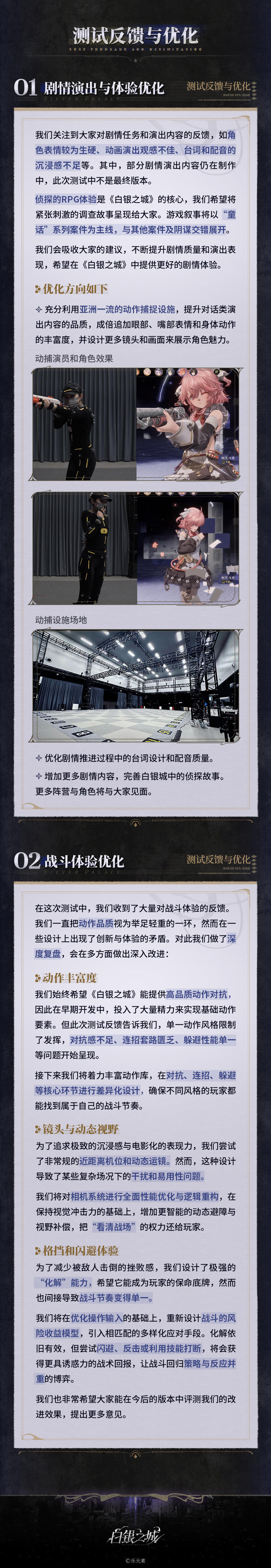 游戏《白银之城》它的同一律测试已经结束了。最近,游戏的开发团队通过官方社交账号发布内容,正式向玩家们汇报了这次测试的收获,并且坦诚地列出了接下来要重点优化的包括剧情演出体验、战斗手感、角色模型的渲染效果,还有在大世界里跑图的移动体验等在内的几个大方向。态度看起来挺诚恳的。
