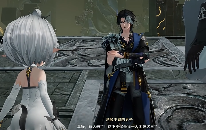 几句话就把刻舟身为飘零人的人味给勾勒的明明白白,人设属于那种讨喜的笨蛋,一路跟我们走来不停的开玩笑还会叭叭机关麻烦为啥不能打一架解决问题,而且在跟我们相遇之前就已经用剑把这边机关都干翻一遍了,但到后面打架的时候救场又相当靠谱,谁会拒绝一个又帅说话又好听还倍有人情味的大侠呢?