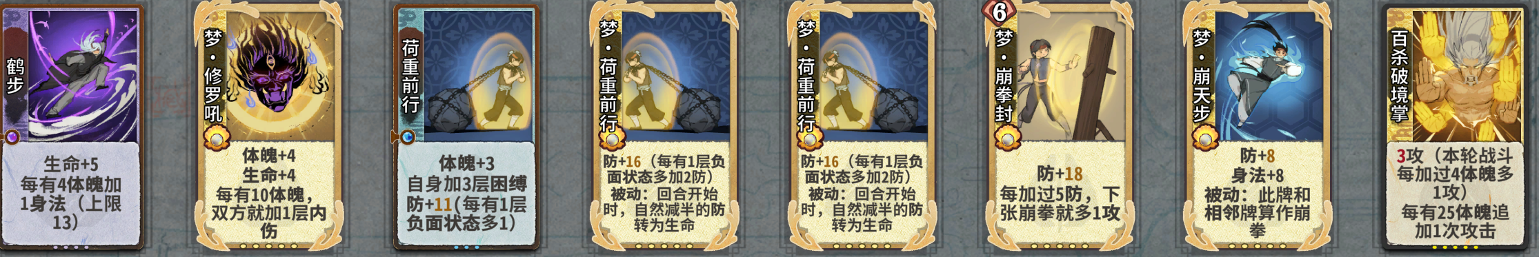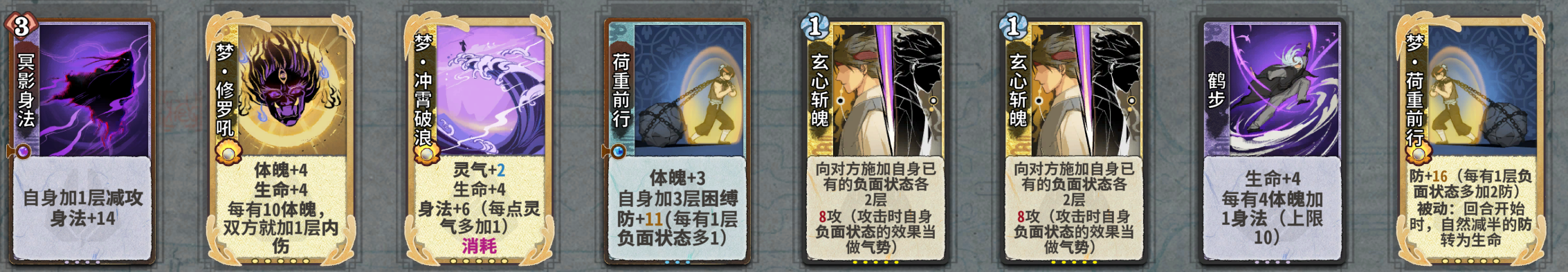 梦修罗+梦荷重+防牌:修玄向的梦卡组合,荷重吃负面出高防转血,在护盾足够的时候,内伤是毒不死自己的,只要防御够高,毒死的就是对面)