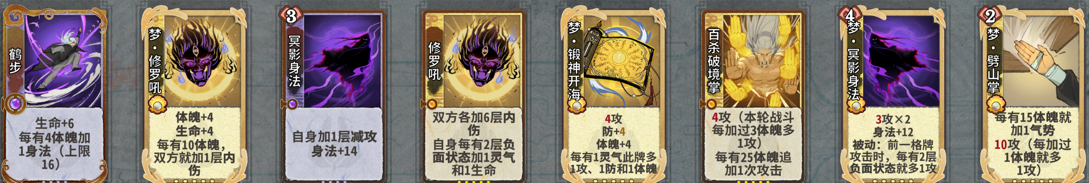 灵锻:鹤步反吼冥影吼梦冲梦金杀百杀(76体以上低成本3卡40身法)