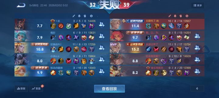第一把第1把是人才射手辅助到了后面偏要追程咬金,你打又打不死,你追他干鸡毛啊,对面高地全都没了,团一波的,本来必赢的,我是真服了。这玩啥?