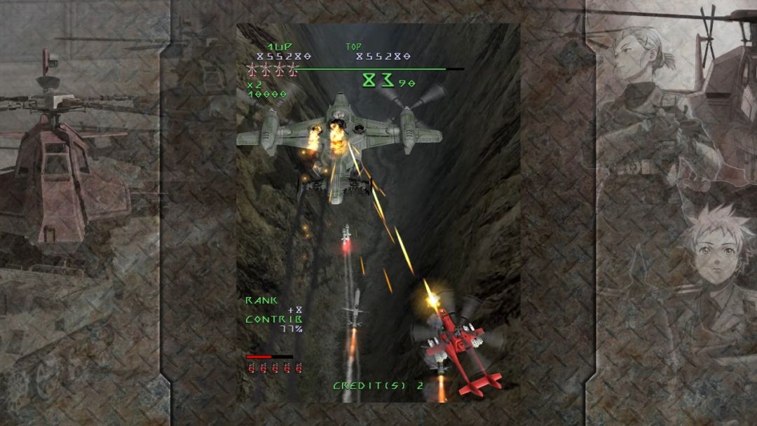 说起来,彼时正是弹幕射击游戏最风光、风格最花哨的年代。在怒首领蜂、东方project等作品把复杂的“弹幕美学”推向巅峰的时期,开发商G.rev却反其道而行,做了这部几乎没有密集弹幕、主打高速弹速与写实军事风格的直升机STG。这种少见的设计让本作当年在一众日式美少女弹幕中显得格格不入,如今再去回味,玩家才发现它被忽视的优势。本次Steam平台推出的整合版,就是目前为止最完整、手感最好、也最适合长期游玩的版本。