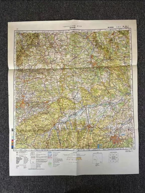 游戏中道具显示为折叠状态,自行找到了一张80年代描绘苏联慕尼黑以及周边地区的的苏联军用地图。游戏中的地图原型展开的话大概会像这个样子。