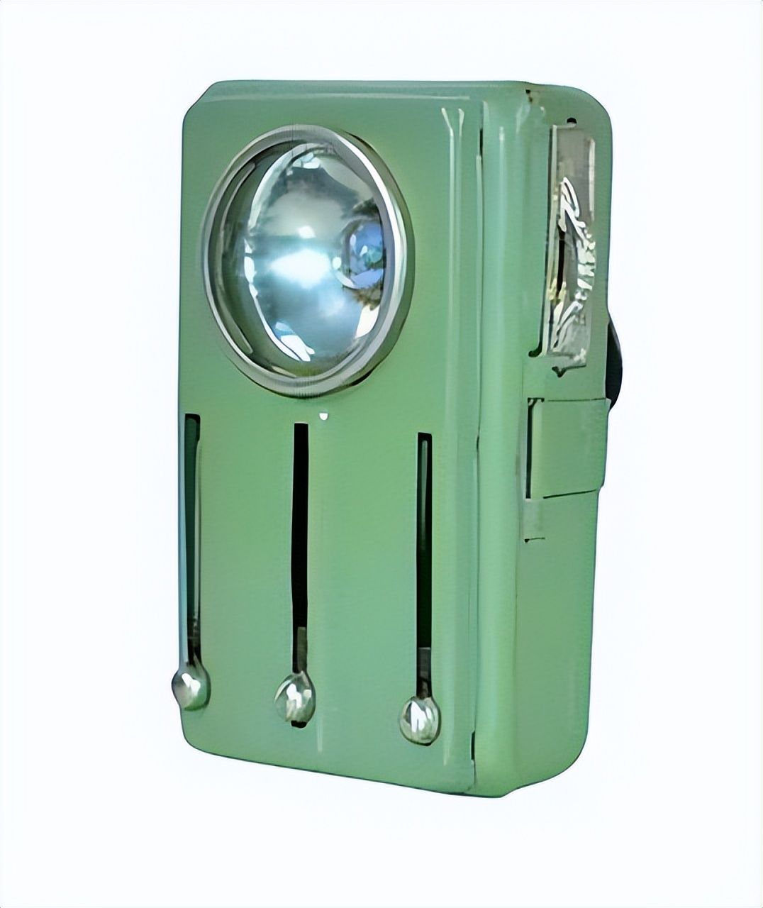 它的三个滑块分别对应红、绿、黄(或白)三种颜色的滤光片,可通过滑动切换颜色,用于传递摩尔斯电码或进行敌我识别,是苏联士兵在冷战时期的重要通信工具。采用金属外壳(图中为军绿色涂装),结构坚固且体积小巧,背面配有皮带夹,可固定在制服上,适合单兵携带。通常使用 3R12 型 4.5V 方形电池供电,部分库存产品至今仍可正常工作。除了军事通信,也可作为铁路信号灯或应急照明工具使用,在民间收藏市场中也因复古外观和历史价值受到爱好者追捧。
