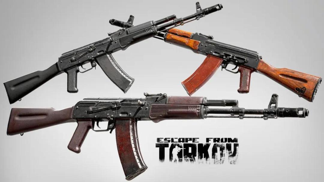 右上角《逃离塔科夫》中的AK74N,相比AK74多了可以用来装瞄具的燕尾槽