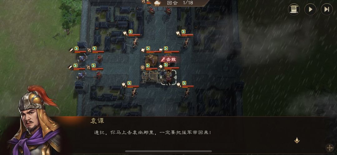2.全军向东,打袁谭所在城池,进入城池后,触发郭图、袁谭撤退剧情,也别打他们,让他们走
