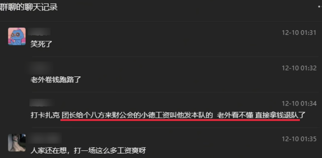然后呢,这事就闹出笑话了。八方来財公会的老外不知道这种方式,拿着四个队友的工资,就……“卷款跑路”了。我估计他还在心想怎么你们中国时光服出手这么大方,真是大大滴呦西,下次带着我的小姨子一起来。