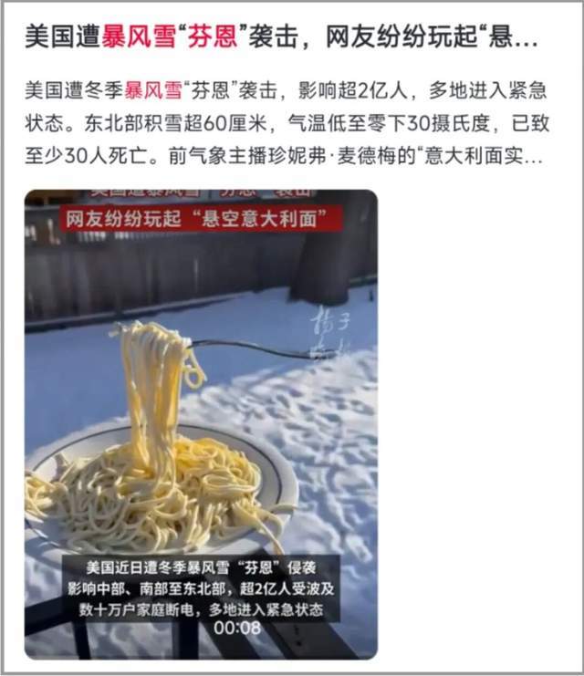情况是这样的,1月23日起,一场名为芬恩(Fern)的大规模冬季风暴席卷美国大部分地区,造成严重人员伤亡和基础设施瘫痪。