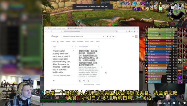 黑话也从入门级升级到了“专业”。不再满足于NB666,一些老外开始学习更复杂的中英双语战术表,“驱散 = Dispel”“打断 = Interrupt”“转火 = Switch Target”标得明明白白。甚至有人为了和中国玩家打成一片(非物理),操着一口分不清是地球人还是火星人的中文,画饼说哪天等你们来美国了请你们吃麦当劳。