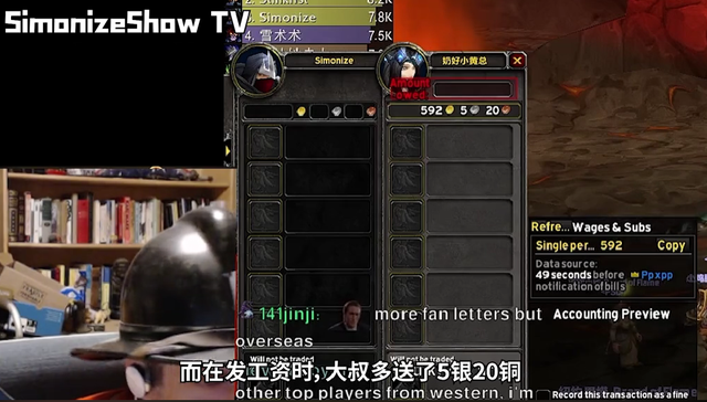 双方互赠礼物时,大叔还多送了5银20铜,就是不知道国外友人Simonize能不能get到520的含金量。