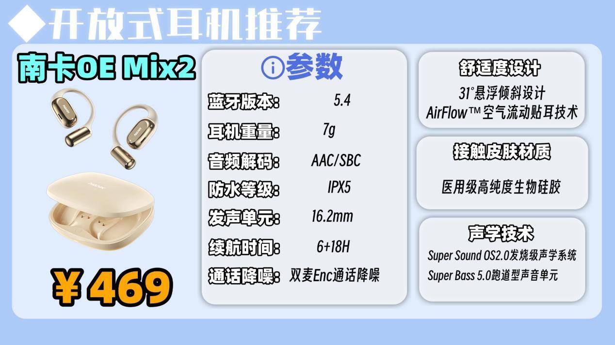 推荐一:南卡OE Mix2开放式耳机 (469元)