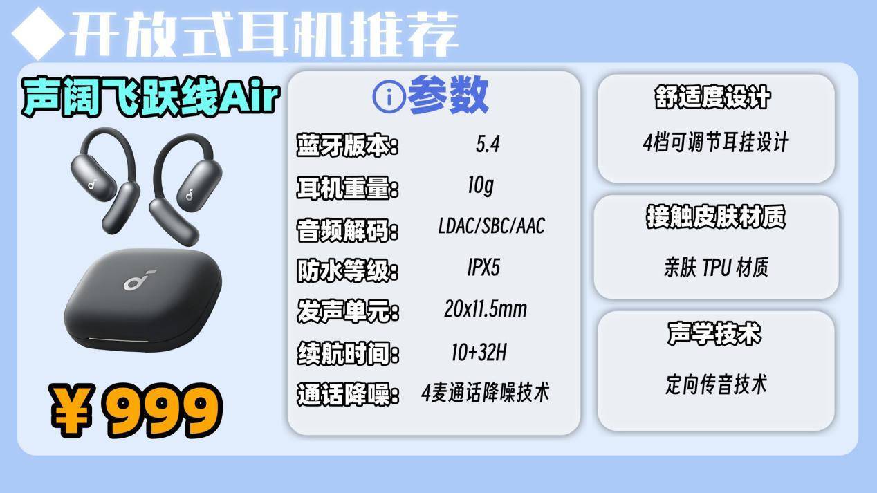 推荐二:声阔飞跃线 Air开放式耳机(999元)
