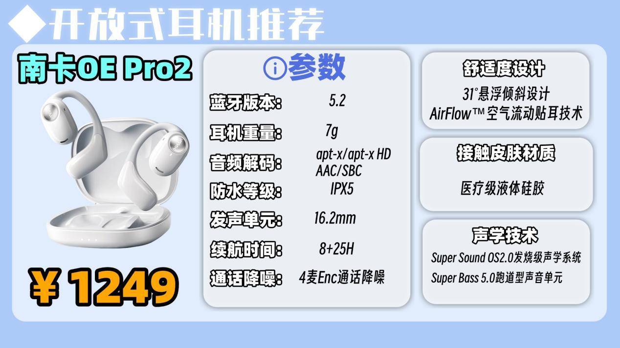 推荐四:南卡OE Pro2开放式耳机 (1249元)
