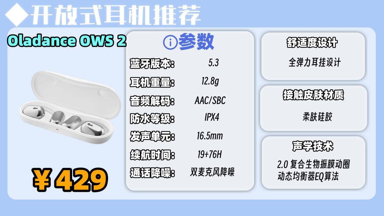 推荐五:Oladance OWS 2开放式耳机(429元)