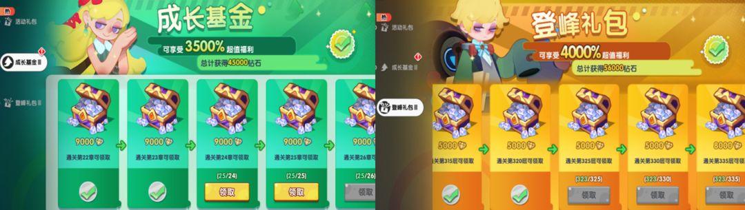 ①基金只要两个可以买,也是这个游戏性价比最高,最值得氪的,登峰礼包,成长基金