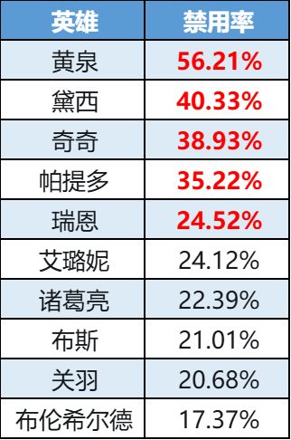 禁用率榜-奇奇威胁度上升,黄泉ban率新高