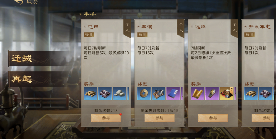 《三国:谋定天下》还特别注重降低新手的操作门槛和时间成本。自动铺路功能让你告别手动一格一格铺路的繁琐,主城内自带资源土地减少了抢地纠纷,练兵所可以自动升级部队,武将等级和战法等级的重置也只需消耗铜币,大大降低了练错队伍的时间成本。攻城时的集结大营和预约功能,更是让你无需时刻在线,轻松参与攻城战。