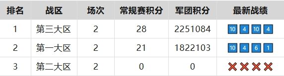 ▪ 每大区前两名的军团,根据其在【跨服军团战榜】当周Top3排名为所在大区积分。