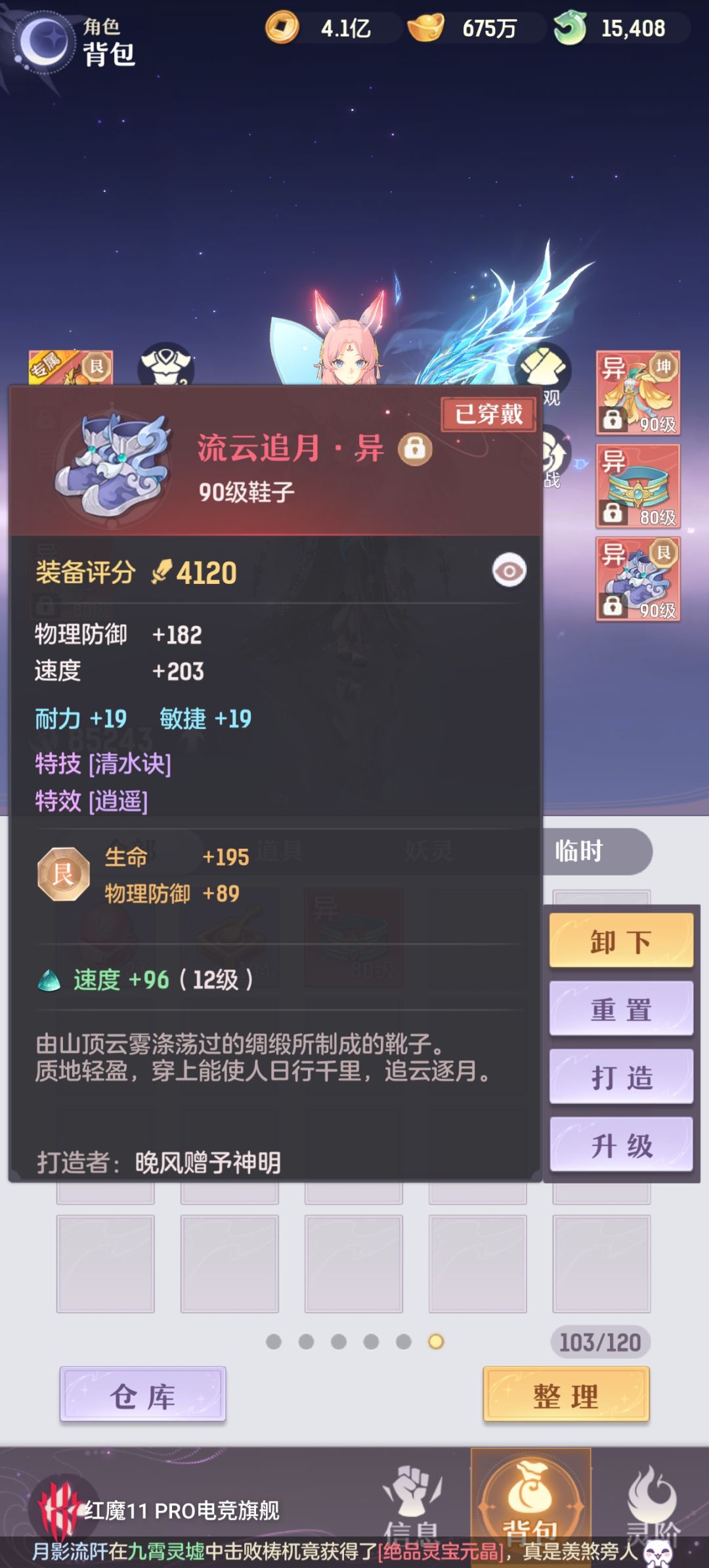 看了一下聚仙阁,也没仔细研究,700直接买了一个89的。铜币四亿多。其他资源也不少。19个成品宠物,都是20000左右潜能,7技能槽,满技能的。