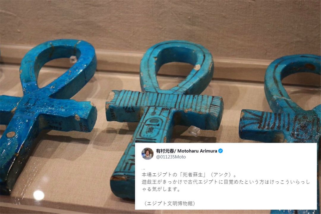 博士近期在社群里闲逛,就看了上述这个有趣的议题。一开始,日本有一位古埃及文化学者,叫“有村元春(社群ID为011235Moto)”,他最近参观了位于开罗的埃及文明博物馆,在里面看到了大量名为“安卡”的埃及十字架,发文分享:这就是埃及正宗的“死者苏生”(安卡)。感觉不少人都是因为《游戏王》而对古埃及产生兴趣的。