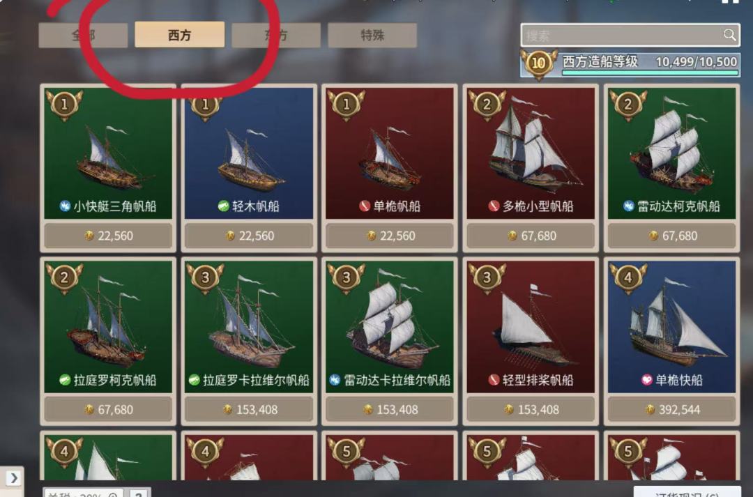 7 造船分为西方和东方,东方不是萌新考虑的,开始在里斯本造西方船,