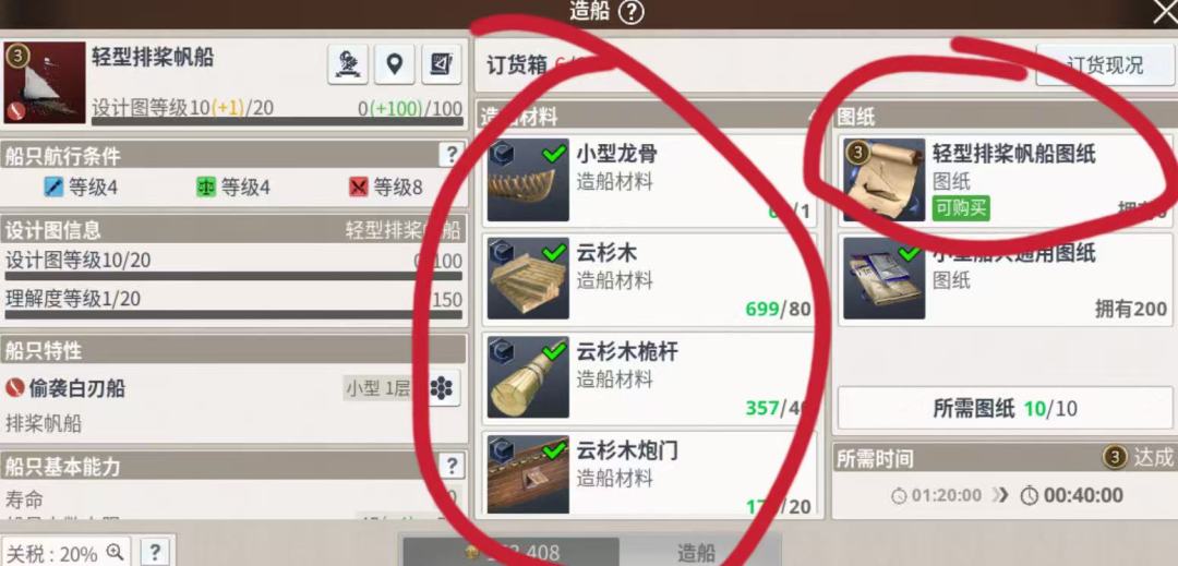 注意,四级船的船材和造船价格,对于新手来说,还是很贵的,没钱就多造三级船。