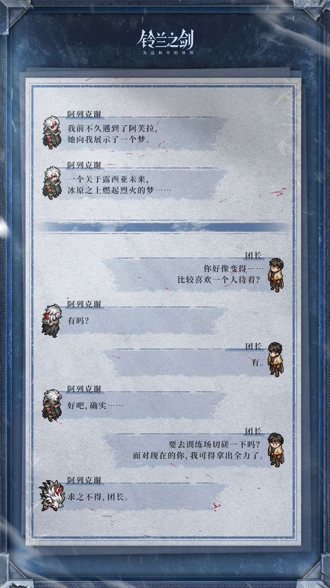 舍弃了身份和名誉,阿列克谢成为新的弃亡者。在冰原上独行的他,青涩蜕为沉稳,迷茫凝作坚定。尽管前途未知,也会继续前行,开辟前方新的道路……