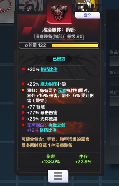 搭配全面防御可以拿到70+的击中和持续减伤,配合光环鞋和元素抗性光环以及两条30%左右的避免元素异常可以免疫深空相关负面词缀,以及大量元素抗性。唯一瑕疵就是没有瓦中双虹。