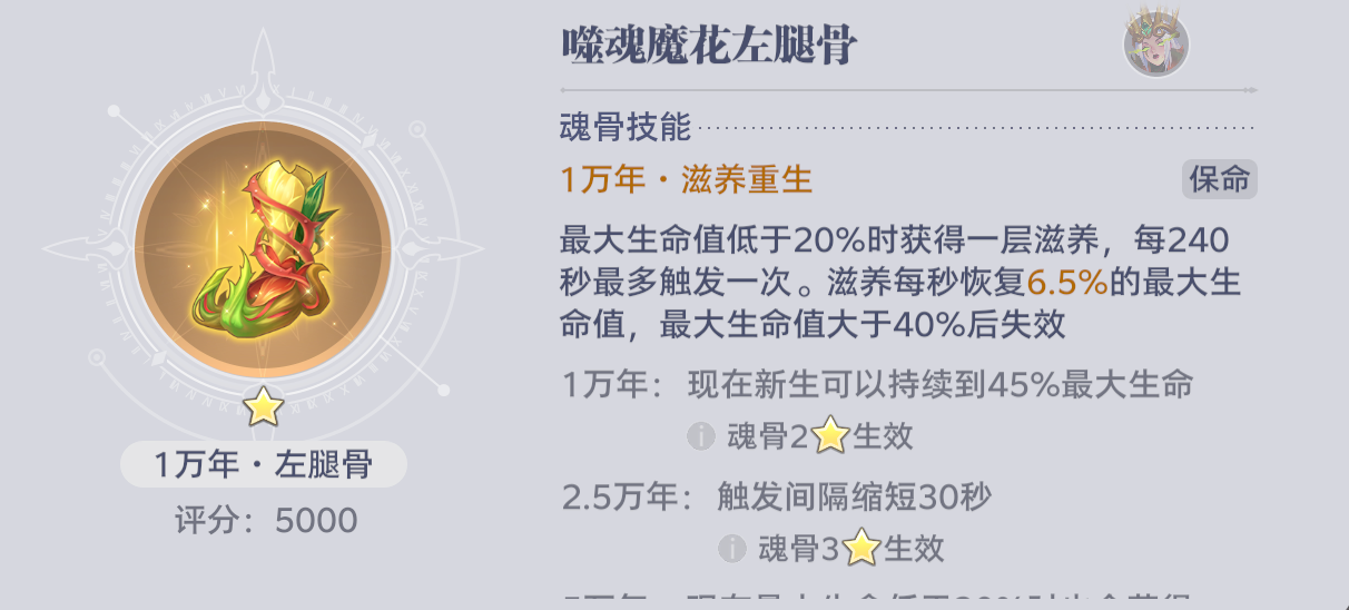 魂核佩戴:千仞雪/菊花/古榕同阵容三,鬼魅圣鹫+冥蛛套