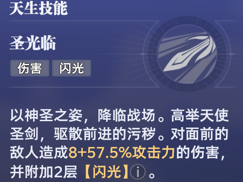 圣光临(先机技能):对周围敌人造成伤害并附加2层【闪光】,可快速叠加层数。