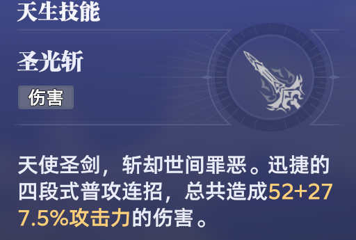 圣光斩(普攻):4段攻击,最后一段附加4层【闪光】,是积攒【闪光】的基础手段。