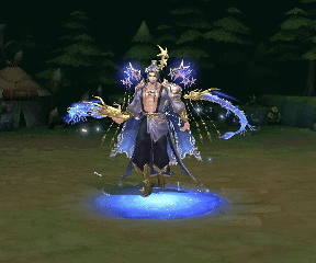 主动:玉帝驱动神力使自身属性强化,同时以自己为中心生成一个环形结界,敌方穿过结界时物法强度和移速降低,且玉帝获得『天命』层数。敌方在结界内持续受到法术伤害,如果存在时间过长,则会获得天罚并沉默一段时间。友方单位在结界内会获得攻速和移速加成。